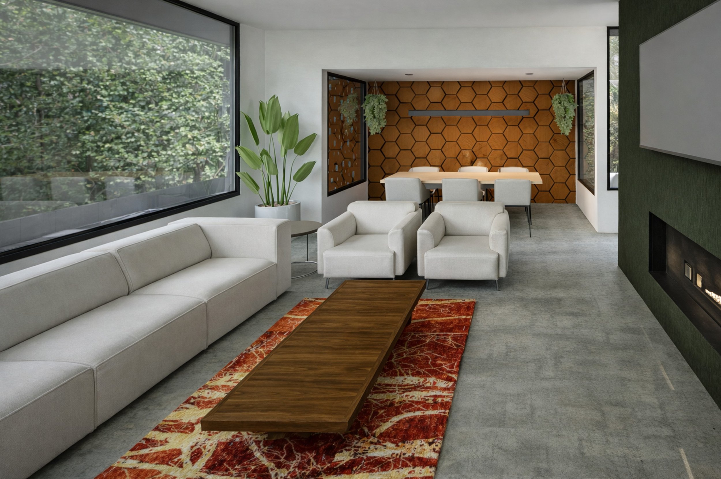 This approach reduces the perceived scale while creating depth, shelter, and framed views.